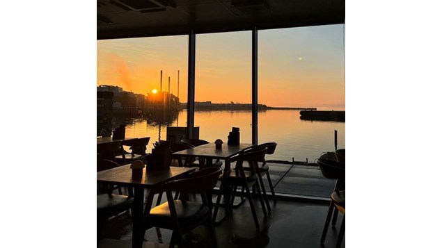… så har vi altså en virkelig fantastisk udsigt på Café Bryggen, som du kan nyde over en frisk smoothie, en frokost eller måske mens I fejrer fødselsdag for en god kollega