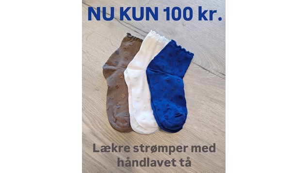 Vi har KUN 4 pakker tilbage af disse skønne one size strømper med håndlavet tå – i flot kvalitet og behageligt materiale.