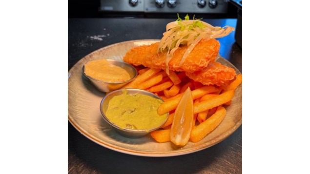 På Café Bryggen har vi altid lækker friskfanget fisk på menuen.…frisk fanget i Vesterhavet. Her paneret til en skøn omgang fish n’ chips