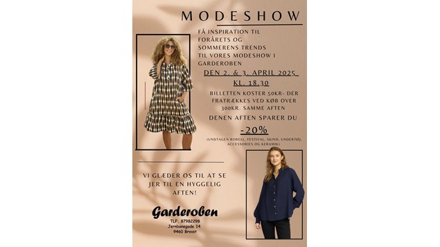 Der er kun få billetter tilbage til vores modeshow i Brovst torsdag d. 3 april.