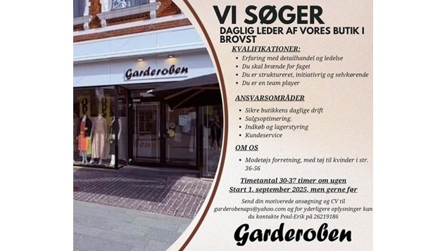 Vi søger en ny daglig leder til vores butik i Brovst