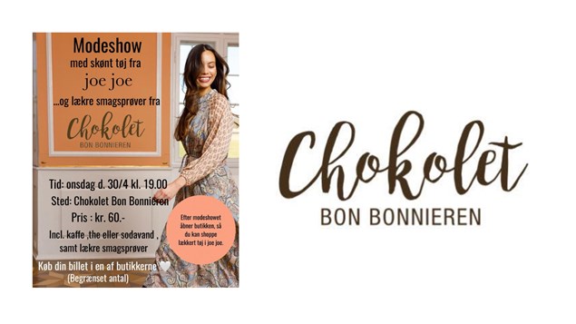 Den 30. april kl. 19.00 inviterer Chokolet Bon Bonnieren til en spændende og hyggelig aften fyldt med modeshow og delikate smagsprøver. Samarbejdet mellem Chokolet og Joe Joe lover at skabe en unik oplevelse, hvor chokolade møder mode i perfekte omgivelser.