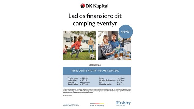Lige nu tilbyder vi finansiering på særligt gunstige vilkår på den dejlige Hobby 460SFf via DK Kapital.