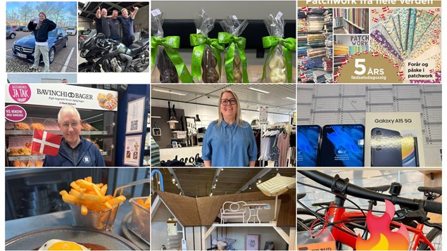 Art'n'Craft fejrer deres 5-års jubilæum med 20% rabat på alle patchwork-stoffer fra 12. marts til 22. marts. Kylling & Co tilbyder frisklavet kylling til salat eller sandwich, mens MOBILHYTTEN har fået nye Samsung-telefoner på lager til særlige priser.