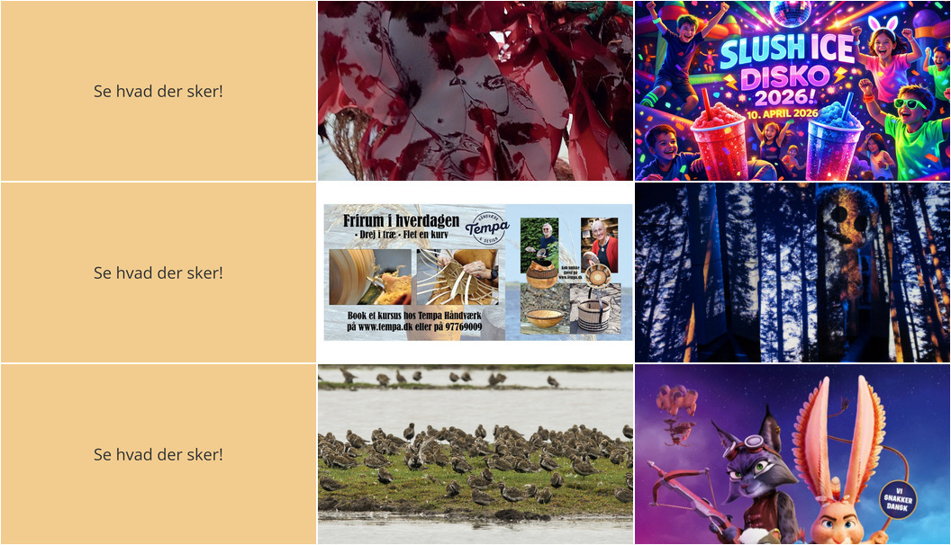 På fredag kan du deltage i en spændende sanketur ved kysten nær Dansk Skaldyrcenter. Her vil du smage muslinger og finde spiselige tangtyper samt andre urter som strandarve og strandkål. Turen afsluttes med et glas vin og er en skøn mulighed for en naturoplevelse ved Limfjorden.