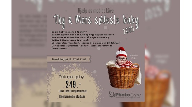PhotoCare Thisted på Vestergade 21 præsenterer en unik mulighed for at få taget smukke billeder af de mindste familiemedlemmer. Konkurrencen er åben for alle babyer i aldersgruppen 0-12 måneder fra Thy og Mors.