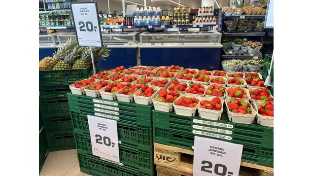 Rema 1000 Nykøbing Mors: Danske jordbær til 20 kr og 1 kg røde druer til 27 kr