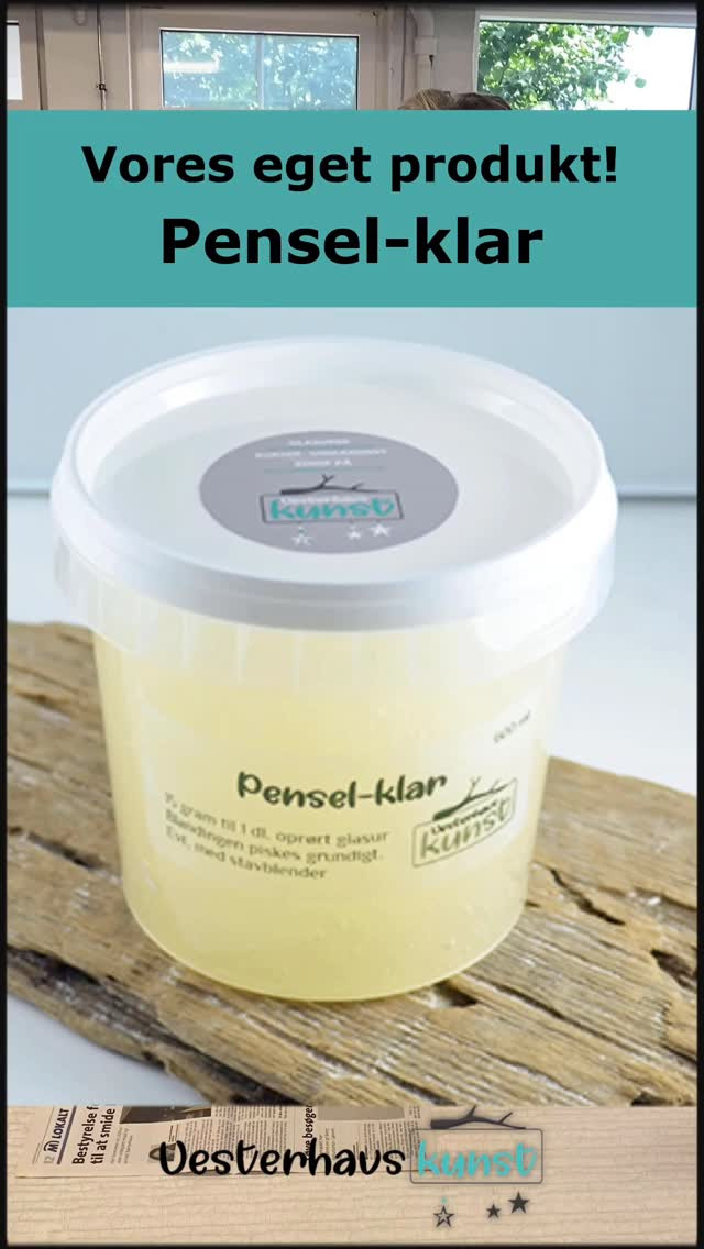 Vores eget produkt, Pensel-klar tilføres i en dyppeglasur, blandes med en stavblender og vupti! Så kan du bruge glasuren som penselglasur.